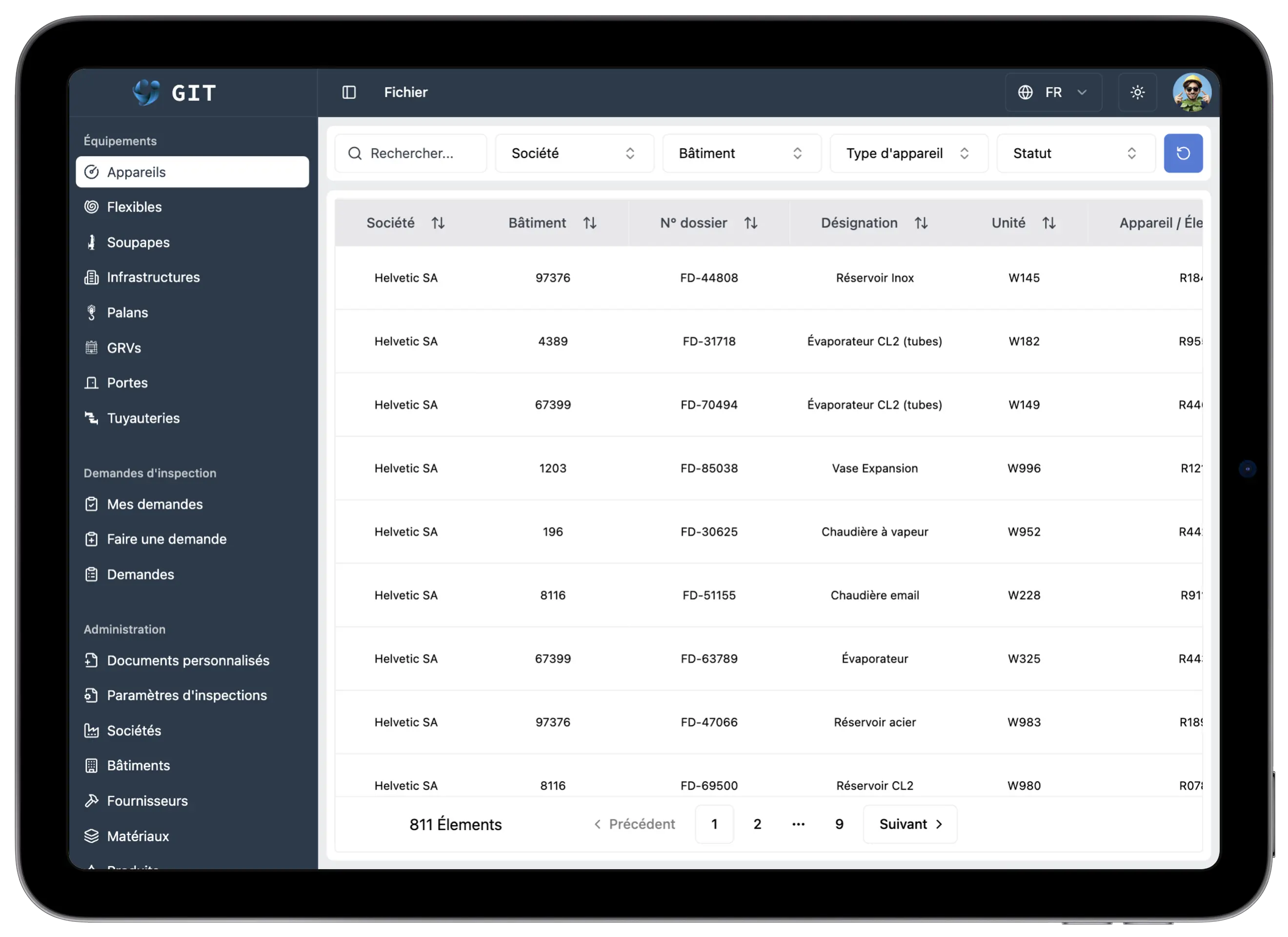Sécurisez vos installations, structurez vos procédures et standardisez vos rapports sur un outil unique.Gestion complète des équipements
